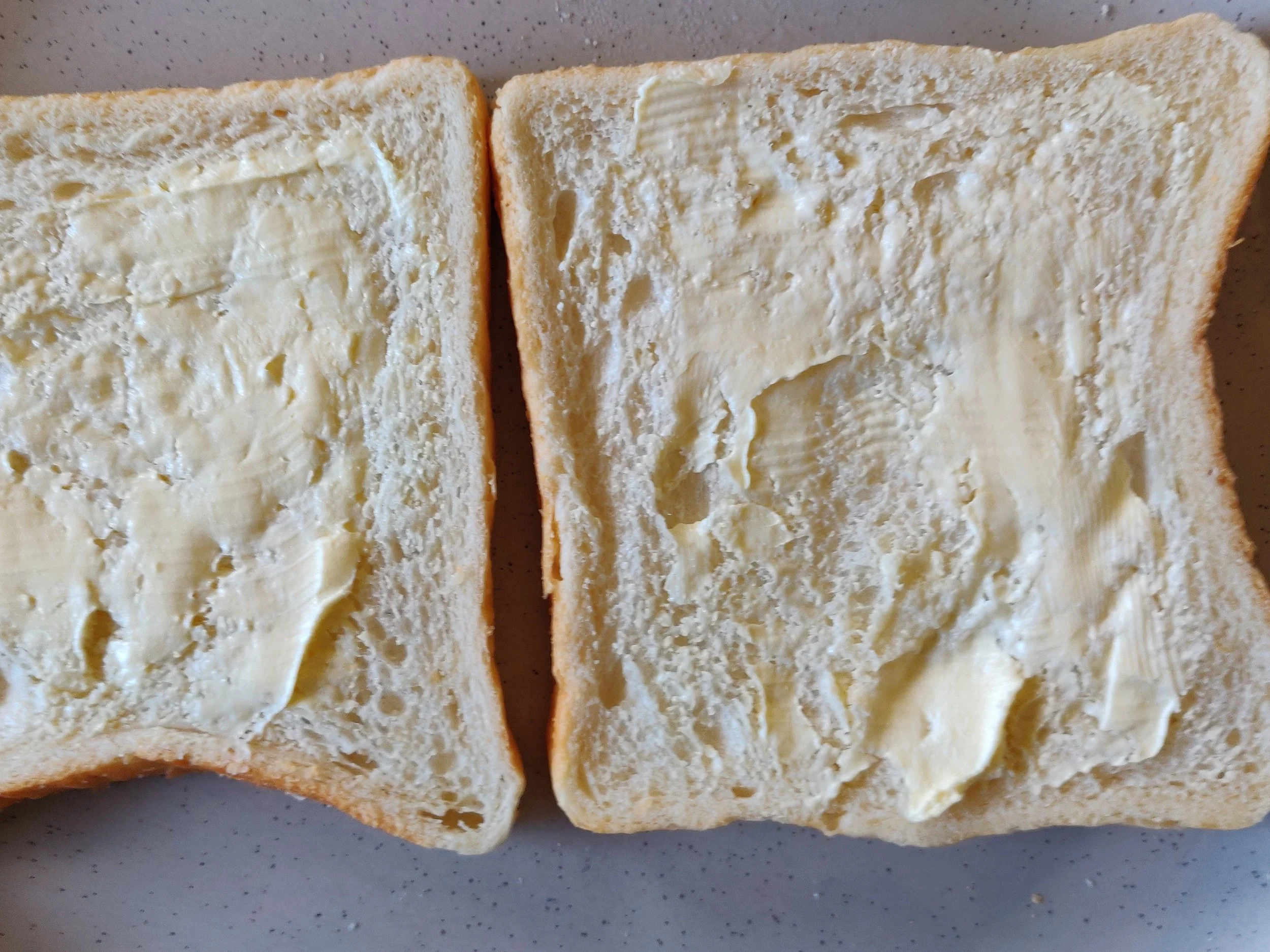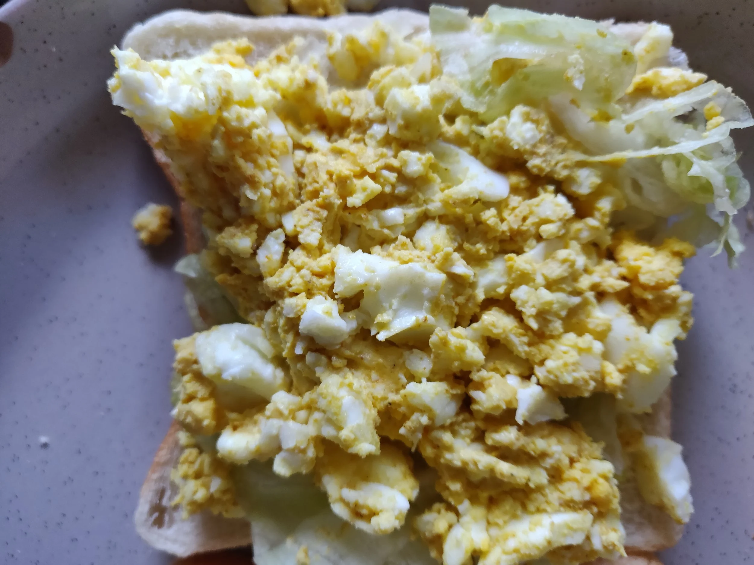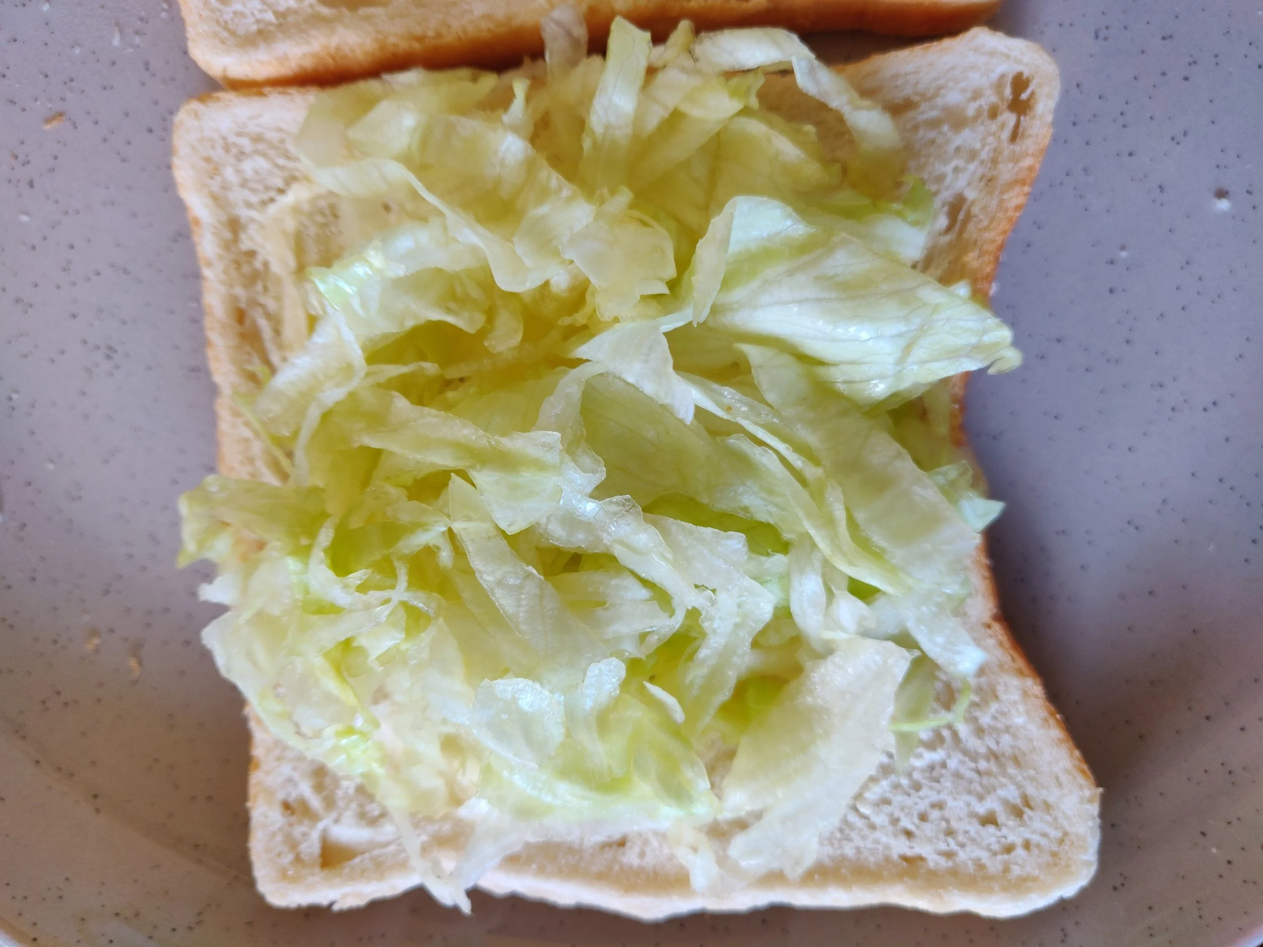 Butter the bread. Add the lettuce to the bottom slice. Add the egg mix on top of the lettuce.