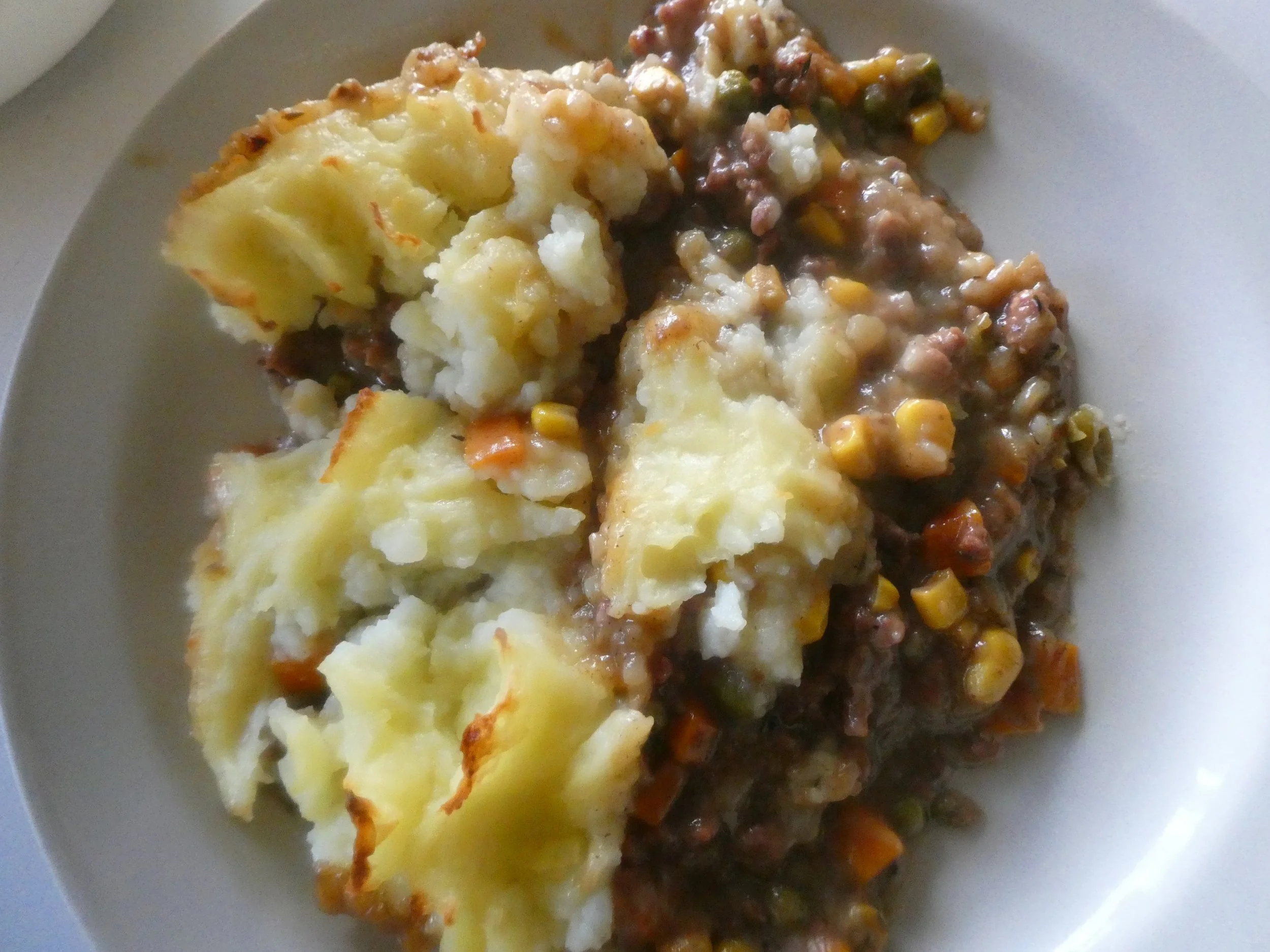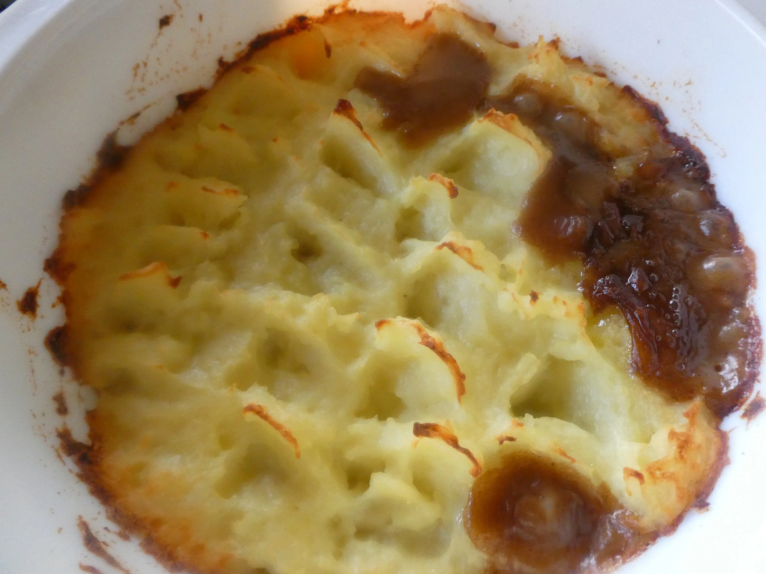 Once cooked, it's ready to serve. It's ok if some of the mixture goes through the mashed potato. Plate up, either on its own or with some chips or vegetables. Enjoy!