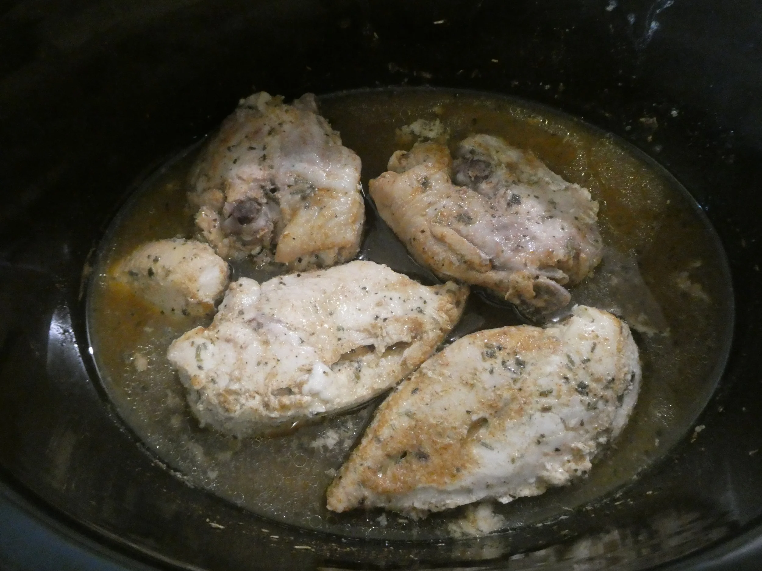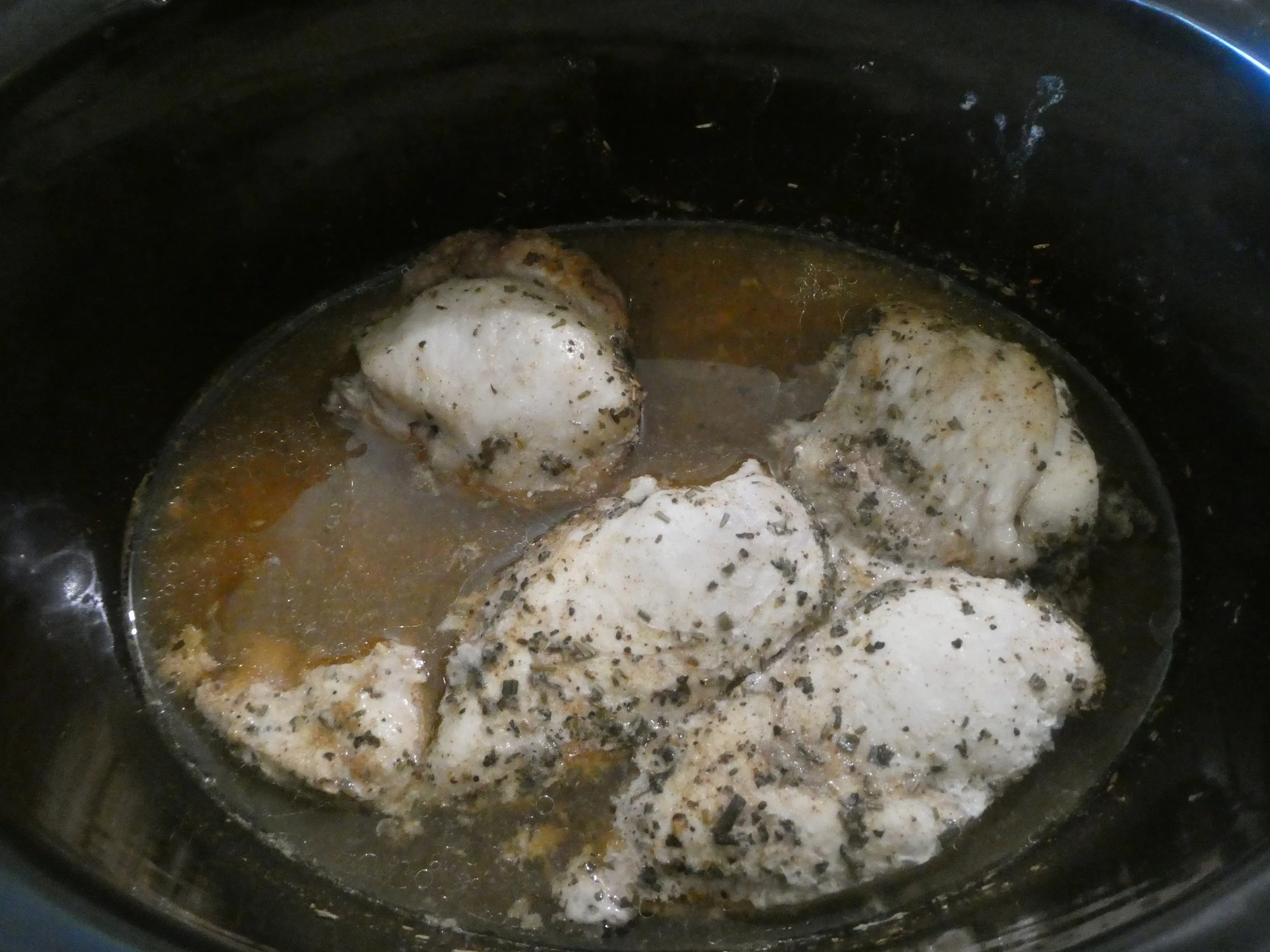 After 2 hours turn it over and cook the chicken for another 1-2 hours. After an hour check the chicken. You want it thoroughly cooked but juicy and easy to shred.